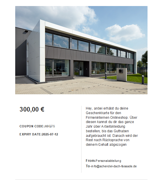 Anfang des Jahres erhält jeder Mitarbeiter eine Geschennkkarte, mit einem bestimmten Guthaben welche ungefähr so aussieht: